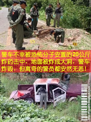 最近有泰南警察前来拜见师傅婆谭昭行,在回途中,离师傅庙的2公里处,不幸被恐怖分子安置的20公斤炸药击中,地面被炸成一个大洞,警车被炸毁,但离奇的警员都安然无恙!此事件传开后,让师傅的圣物再次升温,寺院突然来了很多信众前来恭请难得的圣物!