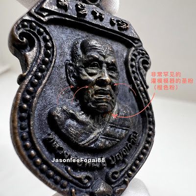 【No★M8569】泰国小乘圣物内非常稀有的「圣铁历莱历南劈」灌模版自身!牌表皮可清楚看到没融化完的旧圣料!旧牌色泽、深蓝色历南劈色泽、亮银色质感、还有「灌模模器的圣粉」!昭坤帕LP Phat用了10个月才完成的灌模版圣物,只制作499粒,非常难找的一批【特别圣料~圣铁历莱历南劈】自身牌