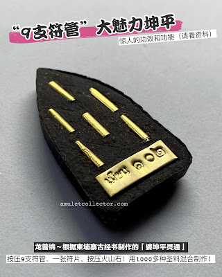 【No★K7807】1000多种圣料混合制作的罕见坤平!总共按压9支符管、一张符片、按压火山石!这粒是根据柬埔寨古经书制作的「婆坤平林通」,由精通泰国和柬埔寨法术的龙普绵亲自手压模制作【“大魅力”坤平】